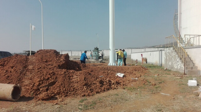 唐山楊官林油庫25米高桿燈,配置光源4盞,400瓦/盞上海亞明金屬鹵化燈,配置一套360度球機攝像頭。